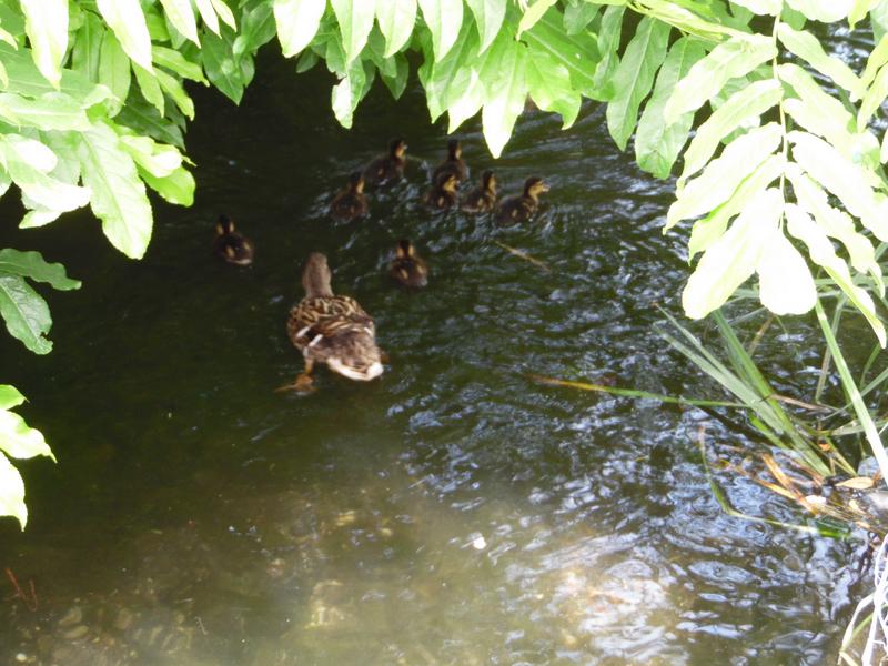 The goose family again. Did not cover the whole pond, but certainly Coot chicks as well.