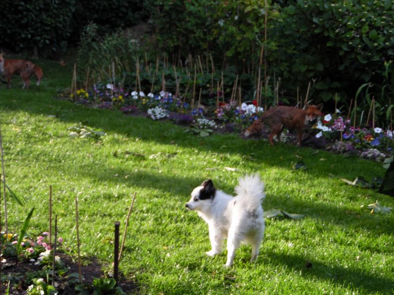 Lucy the dog still like to bark at the foxes, but her old legs no longer allow her to chase them out of the garden.