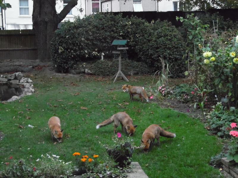 6th August 2018 - had some rain so the lawn is slowly recovering, four foxes waiting for dinner.