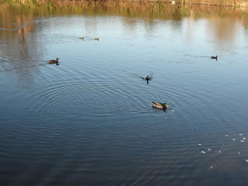 Early morning, there is no fishing so the ducklings are back on the large pond.