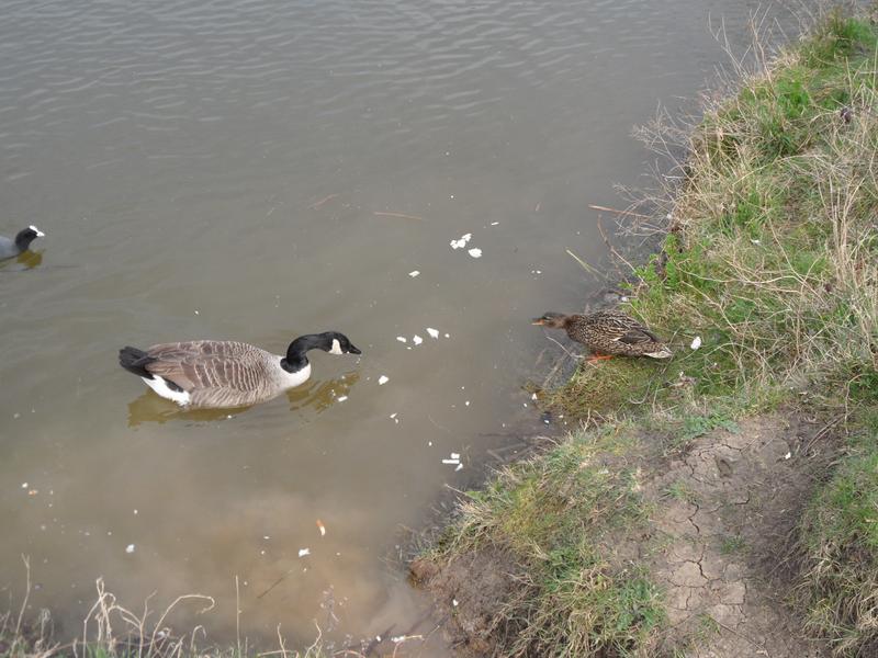 4th May 2012, a pair of Canada Geese have returned to the pond, looking for food.