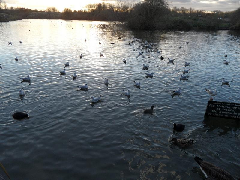 Only one domestic duck today, lots of noisy gulls, mallards and coots.