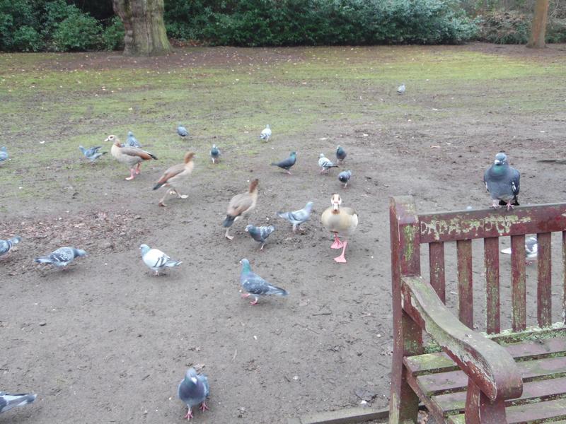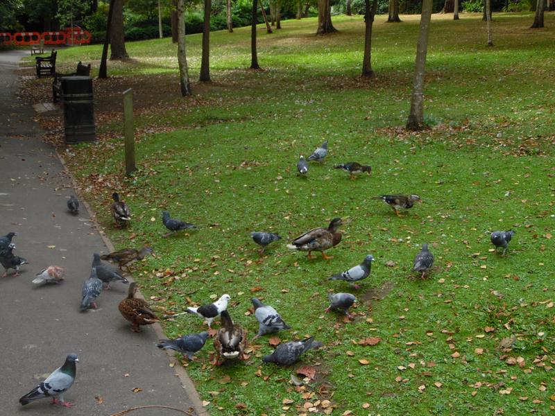 19th October 2016, a school day so the park is peaceful. Hungry birds following me.